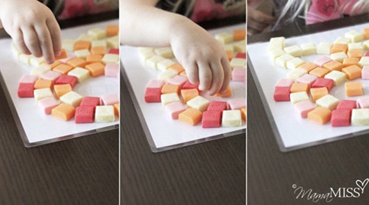 After you celebrate Halloween, it’s time to go from monsters to masterpieces! Make a candy mosaic or edible jewelry. Any candy with a colored coating makes the perfect medium. Dip pieces into small bowls of water and then swirl on paper. Trust us — the memories are worth the mess!